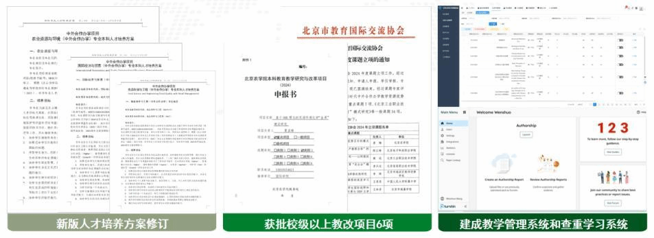 提升师资队伍国际化能力,搭建多元国际合作平台,成功获批“中阿高校10+10合作计划”农业领域成员高校,助力学院教师与法国食品、兽医、农学与环境高等教育研究院、意大利比萨大学、米兰大学、埃及坦塔大学等境外高水平大学和研究机构联合申报国际合作项目,3名教师获批北京市教育国际交流协会的国际合作交流研究项目。
