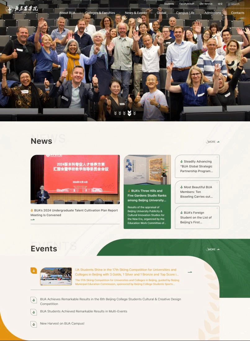 有序推进“留学北农”工作,顺利实施俄罗斯莫斯科法律大学交换生项目,9名国际学生开启北农精彩学习之旅,其中一名学生被北京市外办授予“北京国际友好使者”,并代表学校参加北京市教委首次打造的沉浸式来华留学生国情教育实践课程。历时6个月精细打磨,学校英文官方主页全新改版成功上线,月均访问量4500人次以上,成为学校国际形象展示的窗口。