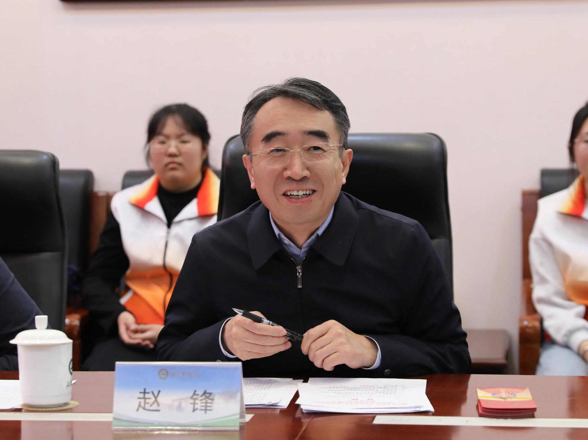 赵锋对黄英锋一行表示热烈欢迎,并代表学校对团中央、团市委长期以来给予学校的关心、指导和支持表示衷心感谢。他介绍了学校在高质量党建引领高质量发展、大力培养知农爱农新型人才、引领青年大学生助力乡村振兴等方面的做法和成效。他指出,学校坚持以立德树人为根本,以强农兴农为己任,通过建设乡村振兴“大课堂”、搭建乡村振兴“大平台”、汇聚乡村振兴“大师资”,开好讲好行走着的乡村振兴“大思政课”,教育引导青年大学生厚植“三农”情怀,练就兴农本领,培养了一大批“懂农业、爱农村、爱农民”的知农爱农新型人才。学校将深入学习贯彻党的二十届三中全会精神和全国教育大会精神,深入贯彻习近平总书记关于青年工作的重要论述精神,持续在服务国家战略和首都全面推进乡村振兴的生动实践中,打造具有“首善标准、红色基因、北农特色”的乡村振兴“大思政课”,教育引导广大北农学子“把论文写在京华大地上,把成果凝结在农民的收获里”,早日成为堪当乡村振兴大任、民族复兴重任的时代新人。