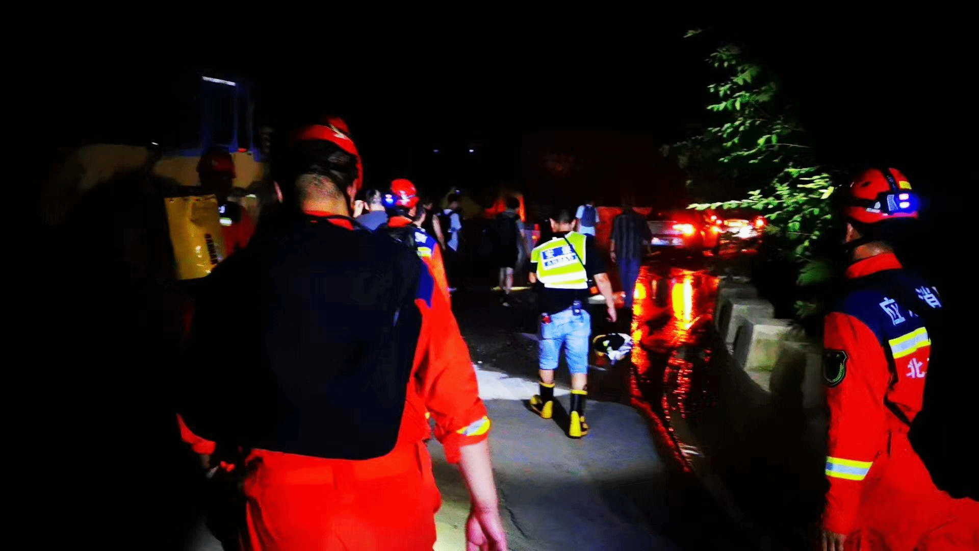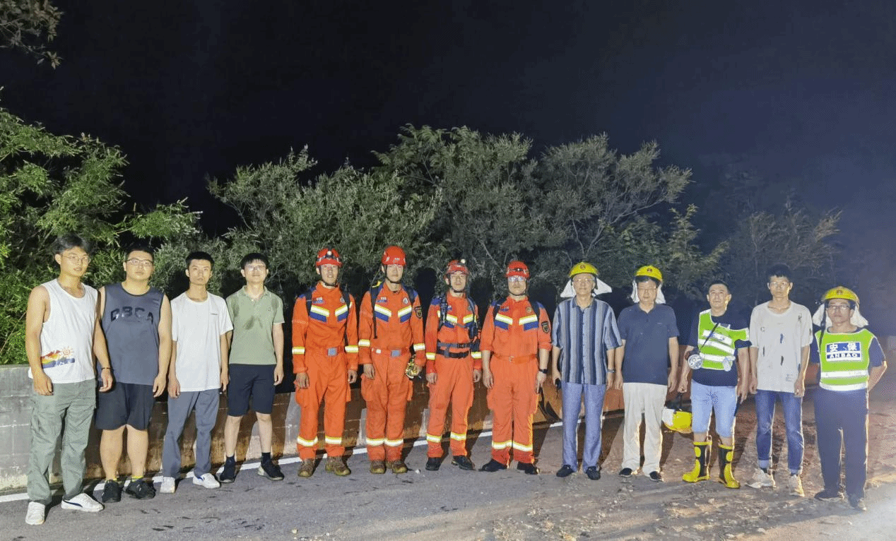 8月3日,学校接到通知,108国道的路面已经基本恢复,救援组带齐装备立即再次出发。当晚九点多,救援组到达距离蒲洼乡科技小院还有5公里左右的地方,就无法开车前行了。救援组决定,由安稳处老师带着熟悉科技小院的老师和4名消防队员去接学生。一个多小时的徒步跋涉后,他们终于到达了科技小院。学生们看到冒雨赶来的老师和消防队员,激动万分、百感交集。“太感动了!我在心里预想过很多种脱困的方式,但没想到能这么快获救。”