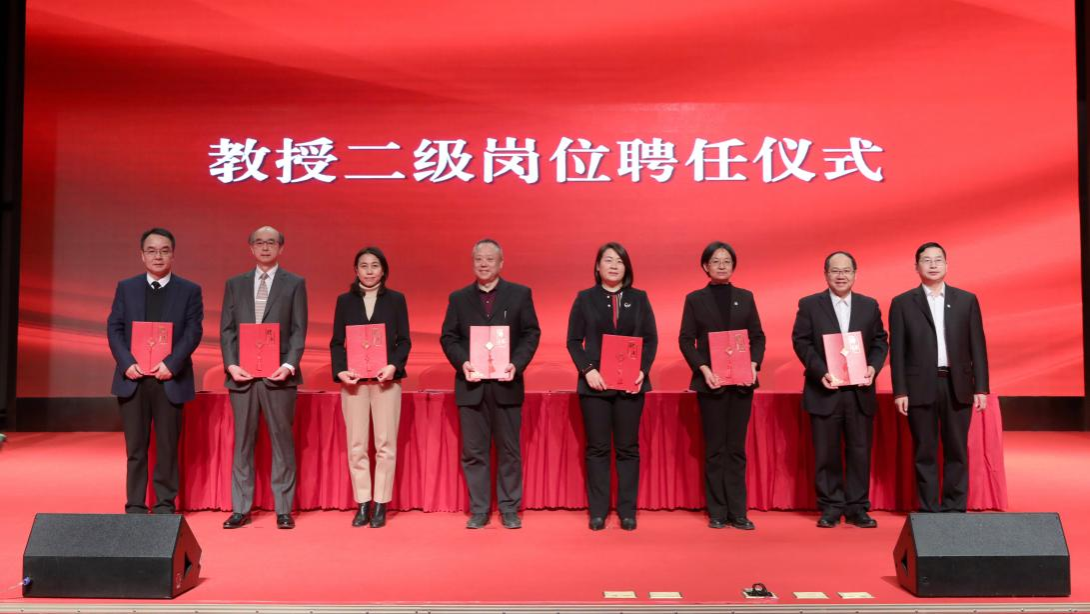 会上举行了二级、三级教授岗位聘任仪式。新聘任的二级教授和三级教授代表签订岗位聘期任务书,段留生为新聘任二级教授和三级教授代表颁发聘书。