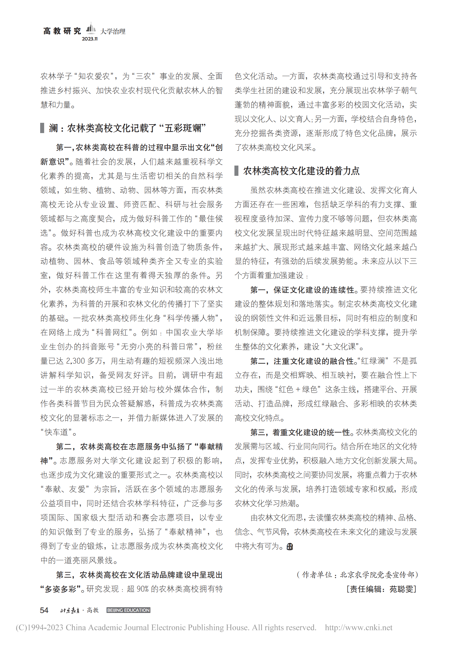 【北京教育·高教】农林类高校文化的特征及建设着力点