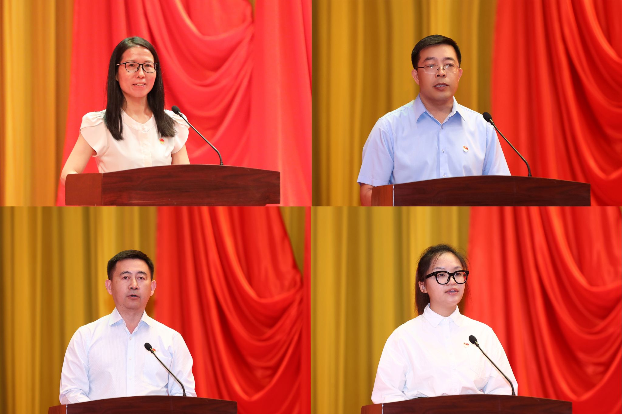 北京高校先进基层党组织、动物科学技术学院动科教工党支部书记李艳玲,北京高校优秀党务工作者、党委宣传部常务副部长、马克思主义学院直属党支部书记高建伟,北京高校优秀共产党员、食品科学与工程学院酿酒工程系主任李德美,植物科学技术学院农艺与种业专业硕士研究生党员高小茜分别作交流发言。