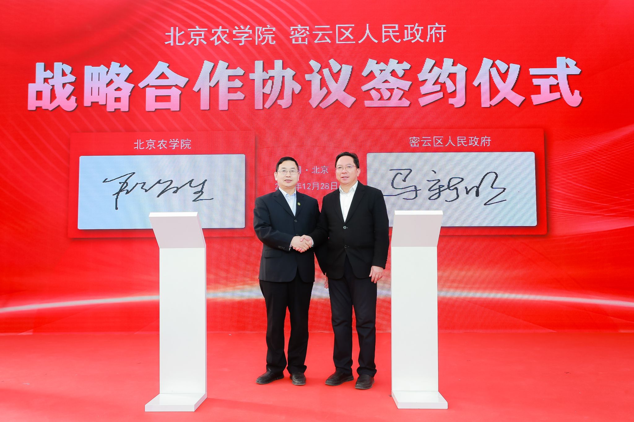 12月28日上午,在密云乡村振兴发展大会暨首届密云西红柿节开幕式上,beat365中文官方网站党委副书记、院长段留生,密云区委副书记、区长马新明分别代表学校和密云区签订战略合作协议。