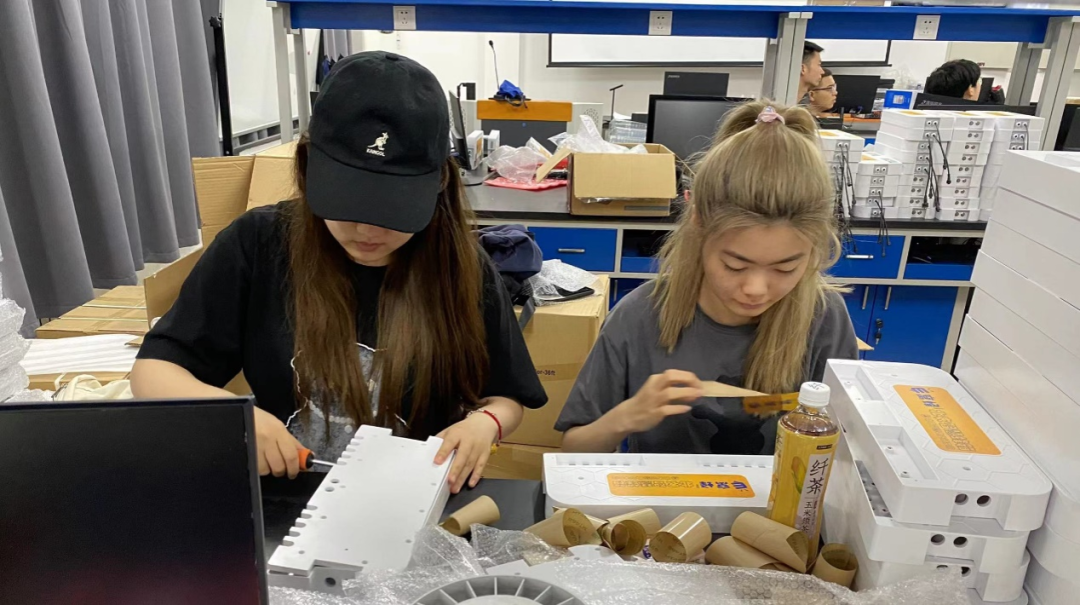 欲筑室者,先治其基。实践团成员从蜂箱组装做起,焊接、拼装、连线、测试,看似一个小小的蜂箱,实则需要很多繁琐的制作步骤,每一小步都不能出错。大家每天都高标准、严要求,以保证每一个蜂箱组装的精准度。