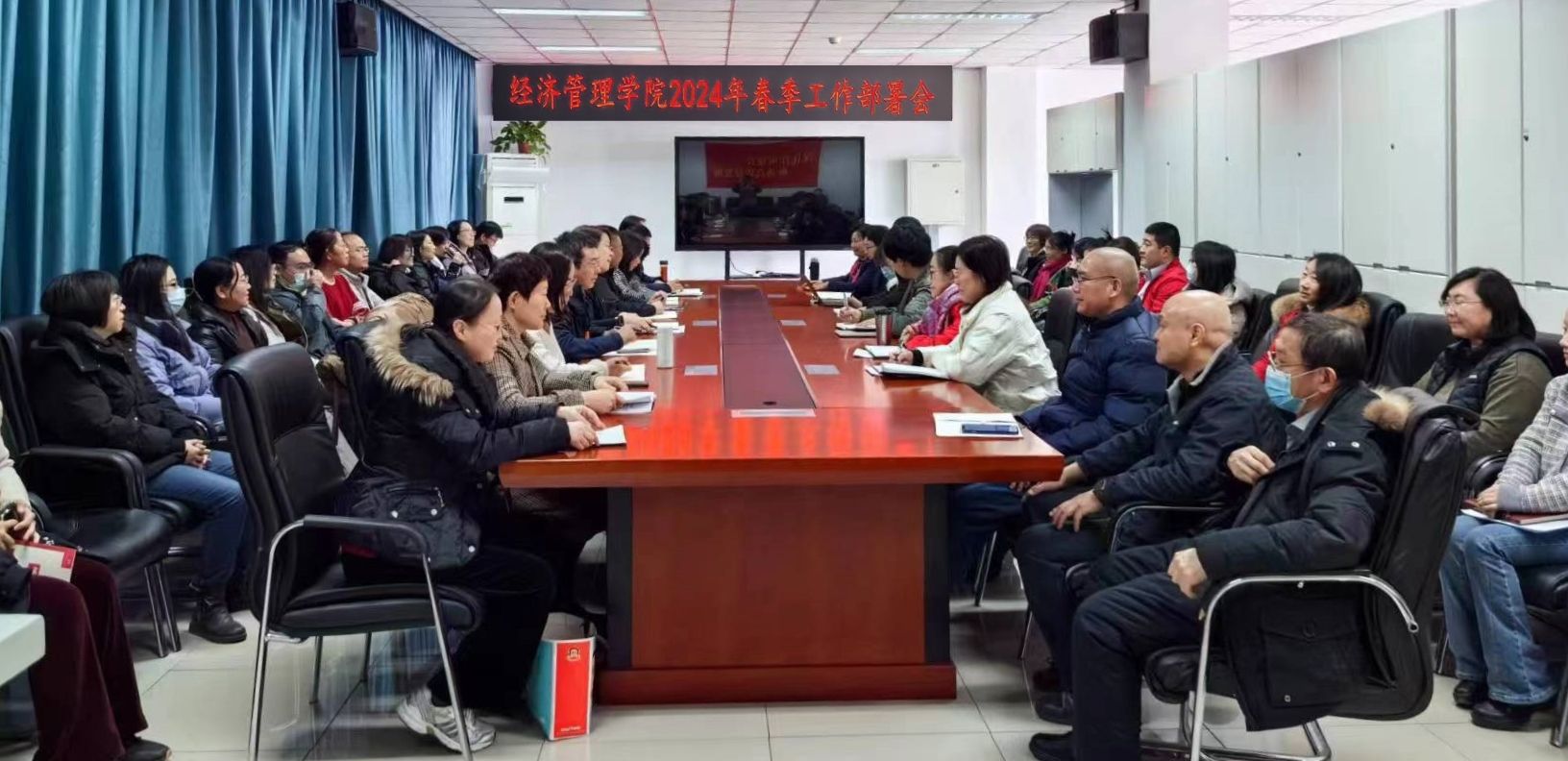 2024年2月28日,经济管理学院召开全体教职工大会,全面部署春季学期工作。