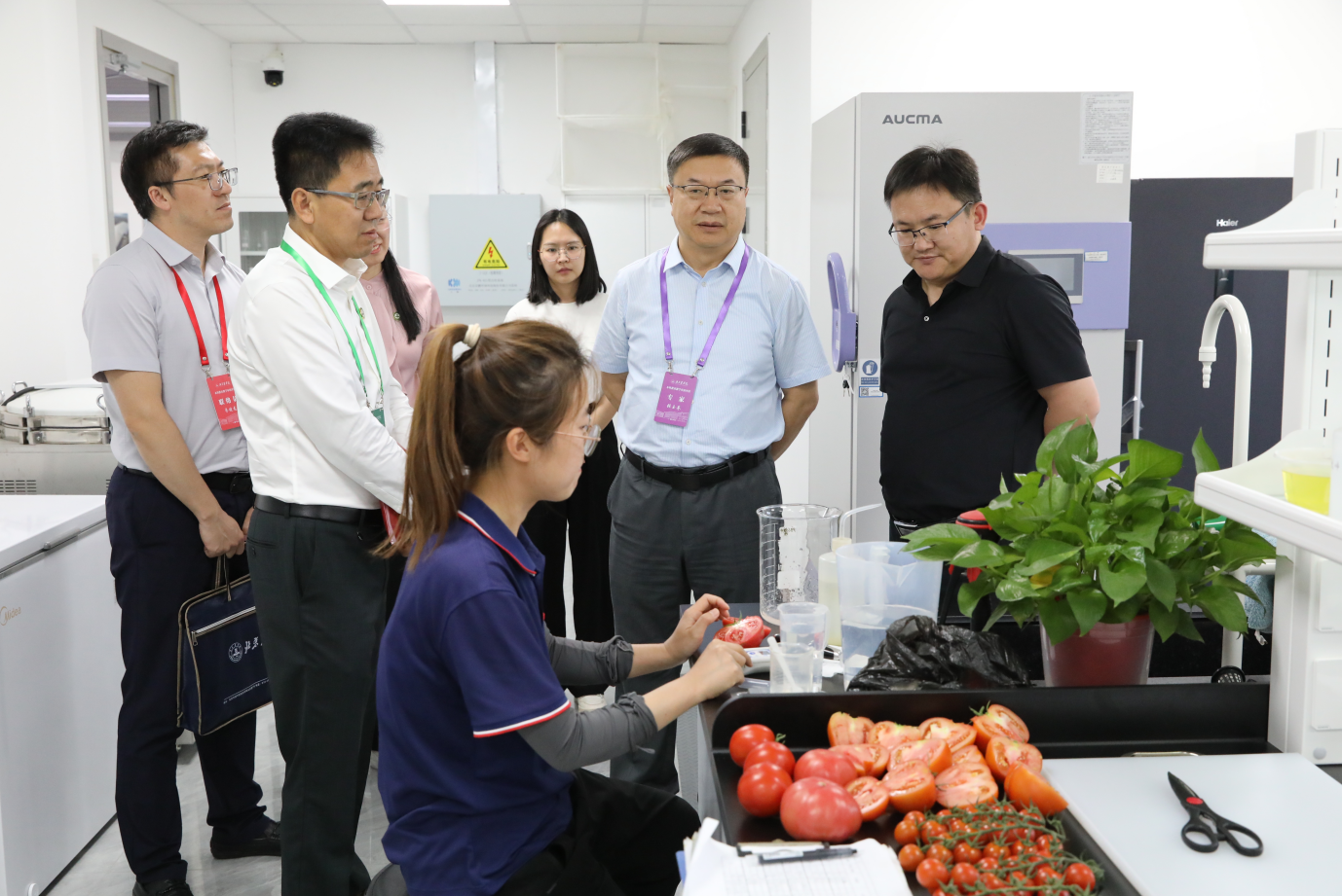 在食品加工与食品安全北京市实验教学示范中心,专家组一行先后来到粮油加工中试车间、啤酒酿造中试车间、葡萄酒酿造中试车间、益生菌发酵中试车间、果蔬加工及贮藏中试车间,了解学校依托教学与科研平台大力培养复合型人才,聚焦首都经济社会发展需求开展交叉学科研究,围绕净菜加工、葡萄酒酿造和益生菌生产等领域开展科技成果转化和社会服务的情况。