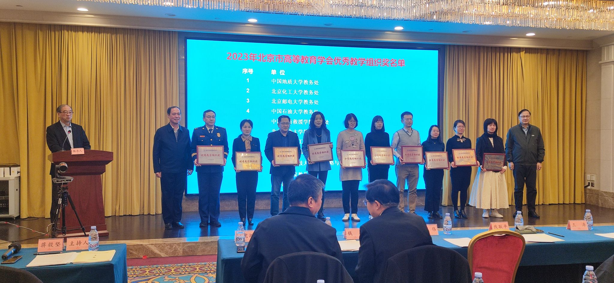 2023年11月25日上午,北京市高等教学会召开了2023年学术年会暨理事会,会上发布了《北京市高等教育学会关于表彰优秀研究分会、优秀工作者、优秀教学组织奖和突出贡献奖的决定》,beat365官网教务处获2023年北京市高等教育学会优秀教学组织奖,教务处副处长颜亭玉上台领奖。
