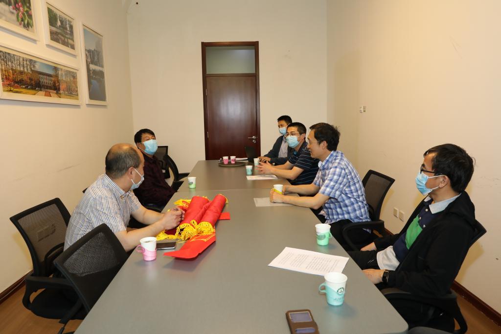 2020年5月11日下午,延庆区珍珠泉乡庙梁村“第一书记”张历、村村牛种植专业合作社负责人崔富国来校座谈并赠送锦旗。科技处副处长谢远红、生资学院王进忠老师,植科学院谷建田老师、王建文老师参加座谈。