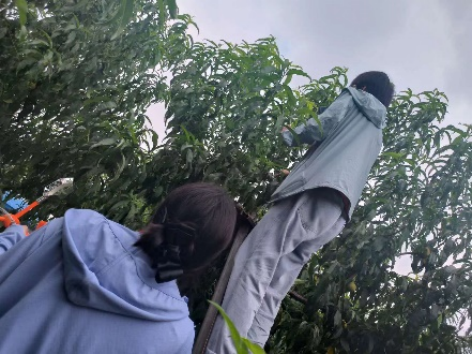 果业强,必须科技支撑。师生团队给全镇大桃种植骨干进行技术培训,主要包括夏季桃园管理技术要点和大桃免套袋省力化技术。免套袋技术通过对当地大桃喷施阳光钙膜等技术手段,实现省力化栽培,同时合理使用菌剂和生物防治方法,配套绿色无害化病虫害防控技术,提升免套袋技术的使用效果和果实外观品质,受到了当地果民的欢迎。