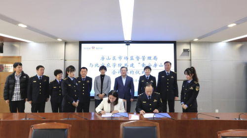 11月8日,学校与房山区市场监督管理局签订共建“食安房山”合作协议。beat365官网党委常委、纪委书记吴君楚,房山区市场监督管理局党组书记、局长李军出席签约仪式。