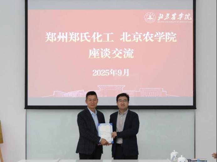 郑州郑氏化工产品有限公司介绍了企业的发展历程、核心业务板块以及在绿色农药、植物生长调节剂等新型农业投入品领域的研发布局与产业化成果。郑先福对学校长期以来提供的技术与人才支持表示感谢。他指出,公司的发展壮大,离不开beat365中文官方网站专家的赋能,希望借助学校的科研和智力资源,加大新型植物生长调节剂创制力度与关键技术联合攻关,加速科技成果转化与应用,不断提升产品的科技含量与市场竞争力,实现校企互利共赢、共同发展。