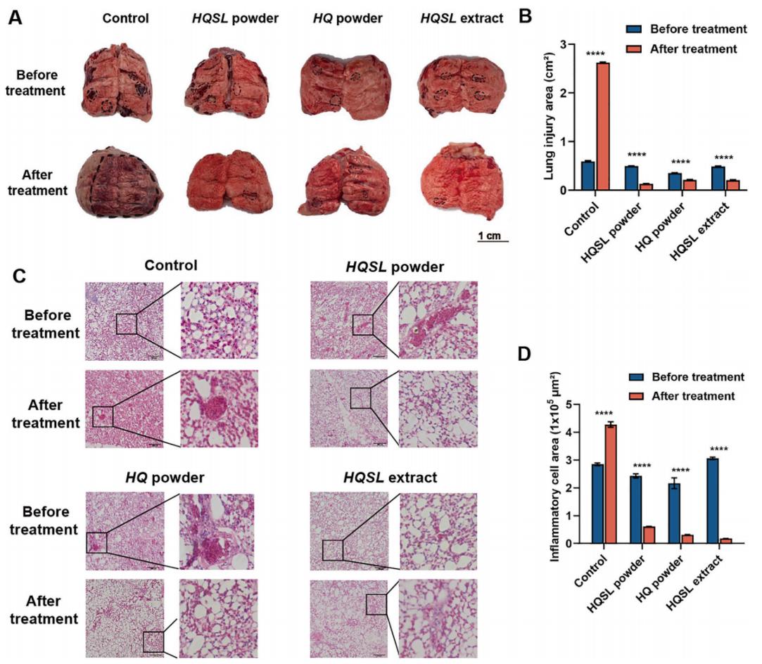 针对呼吸道病原感染引起的蛋鸡呼吸困难、肺损伤、产蛋率下降、蛋壳质量差等产业问题,团队开展中兽药产品研发。产品具有抗炎、抗菌及抗病毒功能,可显著调节肠道菌群,增加有益菌、降低有害菌,有效有效防治蛋鸡临床细菌性肺炎及传染性支气管炎,提高蛋品质。