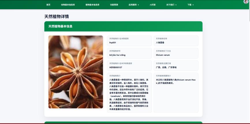 图3 专用数据库天然植物与奶牛预测效应页面(案例)