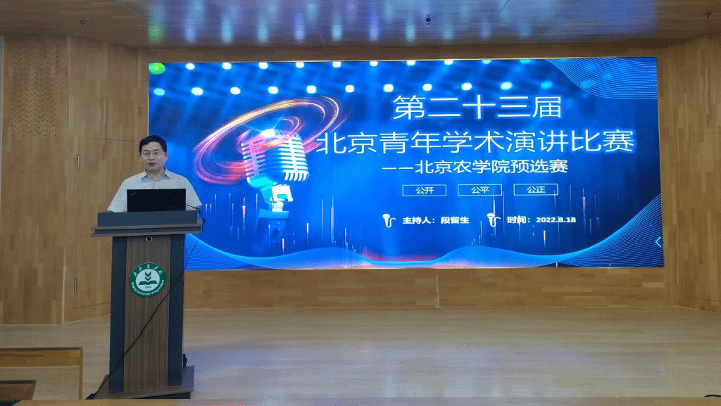 2022年8月18日,第二十三届北京青年学术演讲比赛——beat365中文官方网站预选赛暨首届北农科协青年学术演讲比赛在beat365中文官方网站国家大学科技园路演厅举行,学校党委常委、副院长、北农科协主席段留生主持比赛。