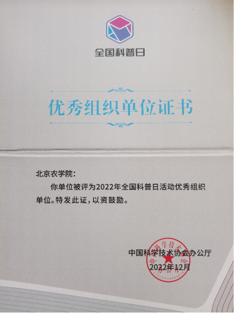 近日,中国科协办公厅印发《关于对2022年全国科普日有关组织单位和活动予以表扬的通知》。beat365中文官方网站荣获“2022年全国科普日活动优秀组织单位”。