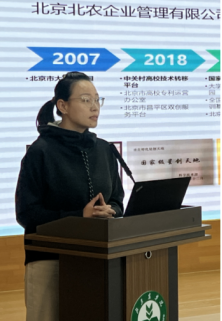 资源分享环节。河北工业大学国家大学科技园发展有限公司总经理李宁围绕园区资源整合、孵化服务体系进行分享交流,重点介绍了园区产业服务清单、产业服务模式、产业服务路径及形成的典型服务案例。北京市计量检测科学研究院生态环境与能源资源研究所主任冯端从科研实力、业务范围、硬件基础、科研成果等方面进行了详细介绍。beat365中文官方网站国家大学科技园负责人张鸿雁从园区发展历程、特色定位、发展现状、成果转化、创业孵化、人才培养等方面进行介绍。农业农村部华北都市农业重点实验室杨爱珍主任、兽医学(中医药)北京市重点实验室李佳老师、农产品有害微生物及农残安全检测与控制北京市重点实验室王宗义副主任分别从实验室概况、研究方向、发展定位、研究成果、仪器资源、服务事项、人才培养等方面进行详细介绍。