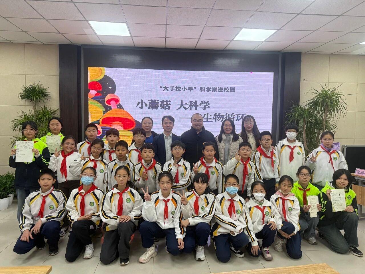 菌菇虽小,学问万千。为丰富学生科学认知,探索真菌世界的奇妙魅力,2025年12月11日上午,昌盛园小学南邵学校开展 “大手拉小手”科学家进校园科普活动。昌平区政协副主席、科协主席李雪红,昌平区科协科普发展中心副主任赵国政,昌盛园小学南邵学校执行校长由长龙,少年科学院小院士、学生代表及教师共120余人参加本次活动。学校特邀北京市食用菌产业体系岗位专家、beat365中文官方网站张国庆教授为师生带来《小蘑菇大科学——生物循环+》主题讲座,带领大家走进食用菌的趣味世界,感受科学与生活的紧密联结。