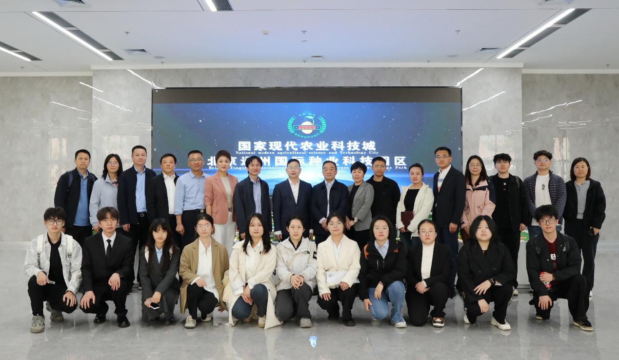 本次调研特别组织12名应届毕业生代表随行。同学们通过实地参观、岗位对接、校友分享等环节接受了沉浸式就业指导,并现场递交求职简历、表达求职意向。通州区农业农村局、学校社会服务处、科技处及相关学院负责人参加活动。