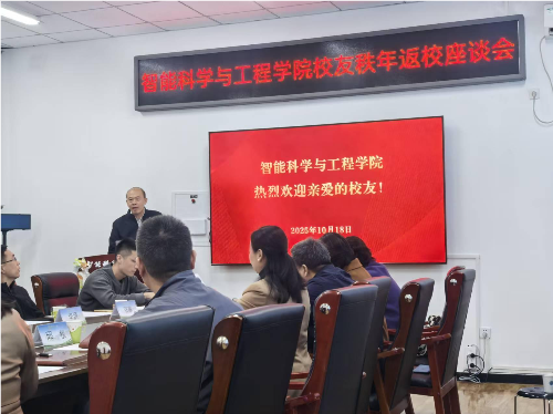 会议伊始,邱权院长向各位返校校友表示欢迎与感谢,并介绍近年学院发展情况。邱权院长指出,在当今时代背景下,智能学院正主动把握发展机遇,通过调整专业结构、强化产学研用协同创新,培育高素质人才,更好的解决未来毕业生的就业问题。邱权院长强调,校友是学院发展历程中最宝贵的资源与最稳固的后盾。学院诚挚邀请校友常返校交流,持续关心学院建设,并期待在人才联合培养、智能领域科研攻关、社会服务项目合作等方面深化联动,最终实现学院与校友的共同成长、互利共赢。