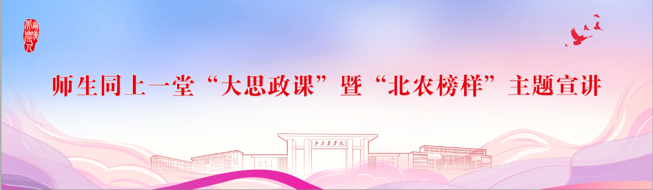 【编者按】近年来,学校党委旗帜鲜明树正气、树榜样、树典型,通过典型榜样引导人、鼓舞人、启迪人。在全校营造见贤思齐、追赶超越的浓厚氛围,不断汇聚推动学校高质量发展的强大力量。学校发展的背后,是一群群北农人用实际行动践行初心使命,用奋斗拼搏诠释责任担当,树立了一个又一个榜样标杆。特举办师生同上一堂“大思政课”暨“最美北农人”主题宣讲活动。通过一位位教职工和同学的讲述,聆听榜样的故事,感受榜样的力量。