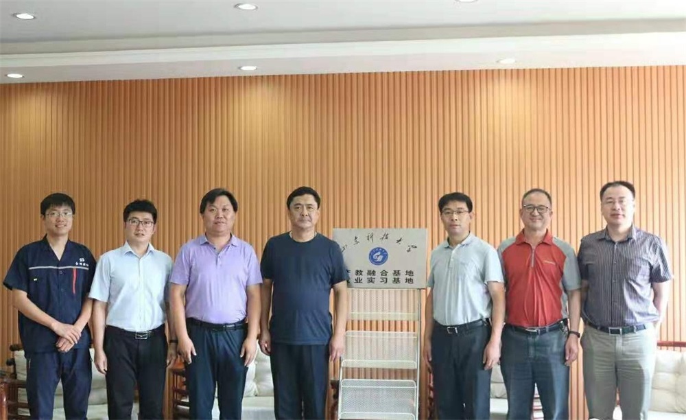 在金刚新材料股份有限公司,申兆亮一行与邹平市科技局党组成员、副局长李勇、邹平市委组织部人才办副主任林小全,金刚新材料股份有限公司董事长赵友谊等就深化校地、校企合作进行深入交流。申兆亮与赵友谊签署了共建beat365亚洲版官方网站beat365产教融合与实习就业基地协议书,并揭牌。在公司期间,申兆亮一行看望了正在公司实习的学生,勉励学生们要注意安全、认真实习,提高自身本领。