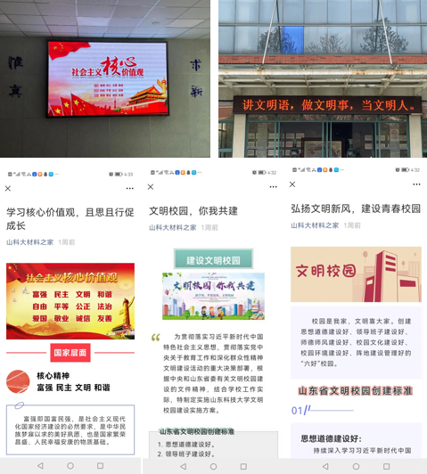 学院多渠道宣传文明校园创建工作,提高全体师生的创建热情。学院通过召开教职工会议,学生班级主题班会,加强文明校园创建方面的学习和宣传。借助电子屏、微信公众号、宣传栏等多种途径加强宣传,形成文明校园为大家,文明校园靠大家的良好工作氛围。