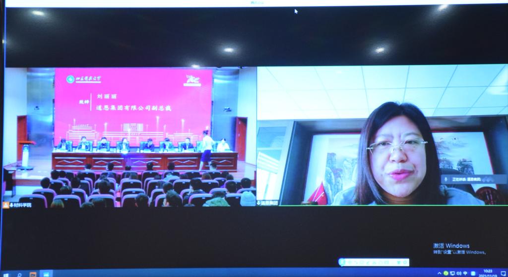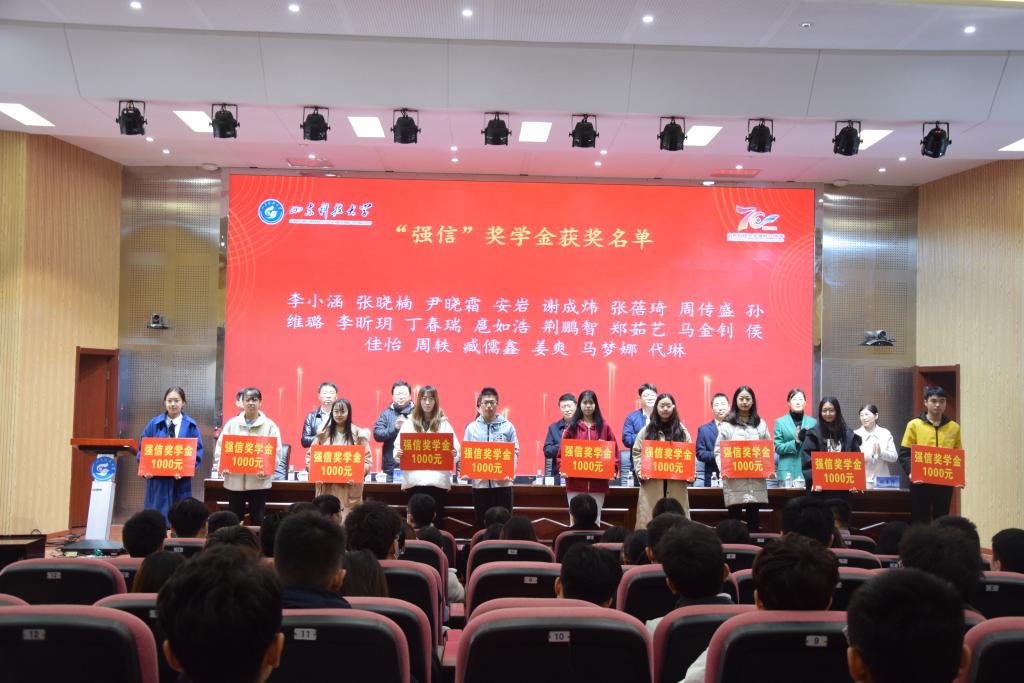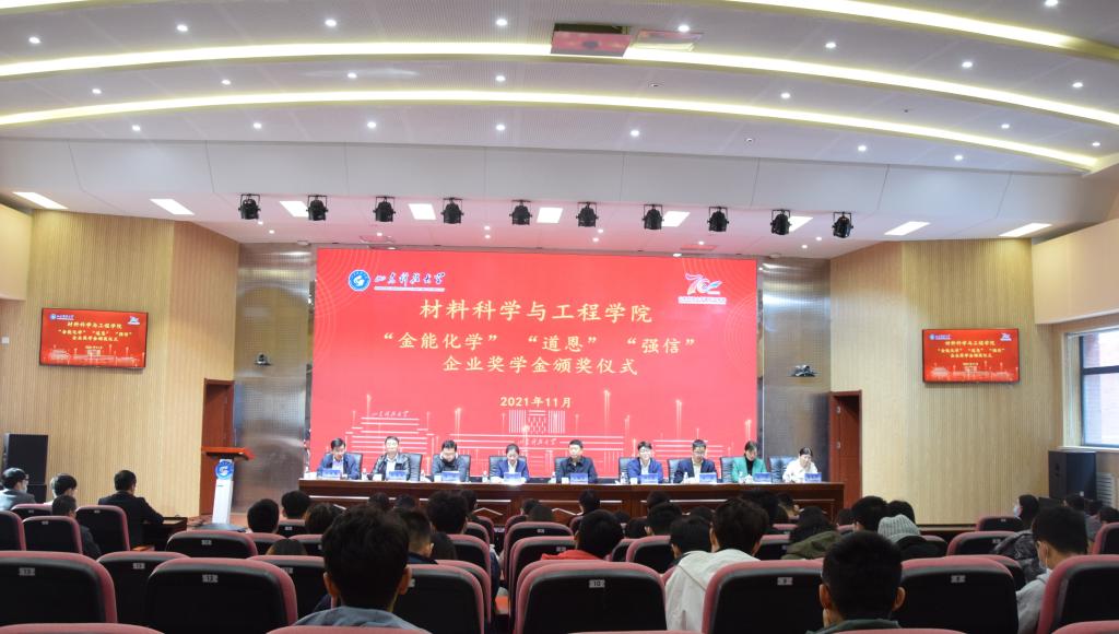 11月19日上午,beat365在J9-144报告厅成功举办2021年“金能化学、道恩、强信”企业奖学金颁奖仪式。本次会议采用线上线下相结合的方式进行,道恩集团有限公司副总裁刘丽丽、金能化学(青岛)有限公司人力资源部经理陈红、合作发展处处长王晓东、校团委书记尹立明、教务处副处长刘冰、研究生工作部副部长刘松、学生工作处副处长孔环、beat365领导班子成员及师生代表参加了本次颁奖仪式。仪式由beat365党委副书记兼副院长李建楠主持。