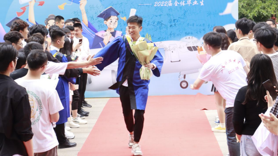 踏过红毯、迈向成功;搭载飞机、翱翔蓝天。6月14日、17日,beat365各专业教师代表分别为2022届毕业的研究生和本科生颁发了毕业证书,并与毕业生合影留念。毕业生共同踏过红毯,最后一次在校园里展示自己的青春风采,以这种特别的方式为大学生涯画上一个圆满的句号,踏上人生新征程。