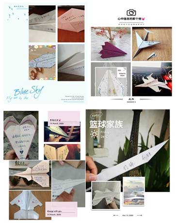 “顺风寄语”线上主题活动期间,同学们亲手折纸,在纸飞机上写下自己开学后最期待的人和最想做的事,分享对班级同学的祝福和想念,并表达了对祖国和家人的祝愿。完成后,同学们纷纷以照片和视频的形式进行了分享,彰显了积极乐观、昂扬向上的精神状态。(通讯员:郑铭嵛)