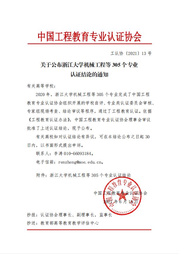 近日,中国工程教育专业认证协会正式发布《关于公布浙江大学机械工程等305个专业认证结论的通知》(工认协﹝2021﹞13号),公布了2020年全国工程教育专业认证的认证结论。beat365金属材料工程专业顺利通过认证,有效期6年,自2021年1月至2026年12月。