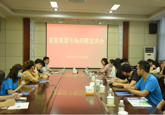 9月25日下午,beat365在J2-434成功举办道恩集团专场招聘宣讲会,学院党委副书记兼副院长李建楠,道恩集团人力总监刘丽丽、人力专员王雪俨、青岛分公司研发经理赵凤雯及毕业班研究生参加了本次宣讲会。
