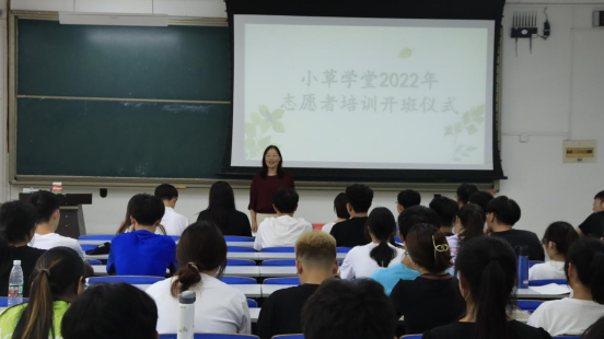 仪式开始,石臻宣读2022年小草学堂志愿者培训计划安排。随后,优秀志愿者代表安岩林发表支教感言,他回忆了支教过程中的难忘经历,希望每个志愿者在有限的支教时间里能够团结合作,展现当代青年的魅力。
