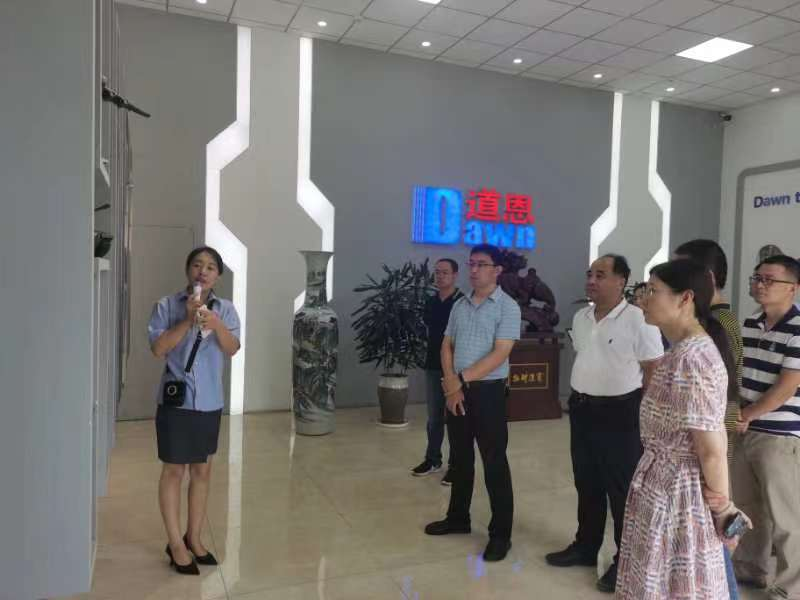 申兆亮一行现场参观了道恩集团总部和园区,公司相关领导及技术人员详细介绍了公司发展历程及生产经营情况。申兆亮一行深入了解了企业的生产规模、技术研发、投资运营模式。