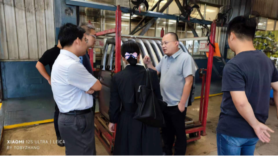 李建楠一行现场参观了青岛五顺汽车模具部件有限公司办公区、生产园区及生活区,公司总经理徐彬及技术人员详细介绍了公司的发展历程、生产规模、技术研发及投资运营模式。