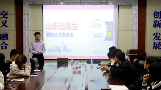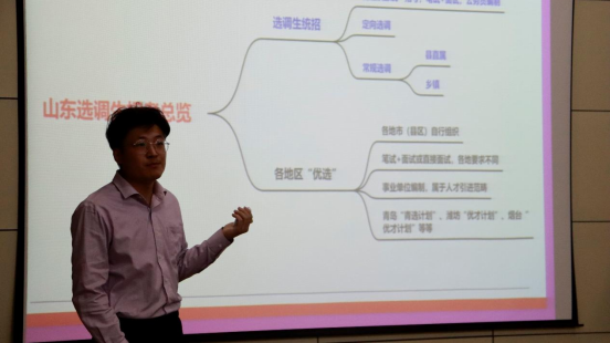在报告中,张凯首先从山东省选调生报名条件、岗位报考、考试内容、考试技巧等多方面逐层讲述了选调生相关内容。随后,他从青选计划优势、选拔流程、面试内容与技巧给毕业生做了青选计划公告核心信息的解读。在报告会上,张凯与应届毕业生面对面交流,就毕业生提出的加分政策、相关公职报考等问题进行了详细解答,保证了毕业生们对报考政策的充分了解。