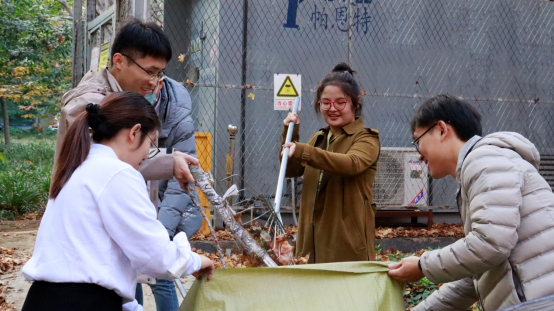 本次活动由学院党委书记申兆亮带队,学院全体教工党员和部分教师参与校园部分主干道路的落叶清扫。活动中老师们争相行动,热情似火,动作麻利。大家手持清扫工具,分工合作,伴随着欢声笑语,很快将马路重归整洁。