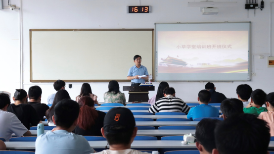 辅导员石臻在开班仪式中,针对实践过程个人安全、团队合作、遵纪守法等方面对同学们作了要求,希望同学们能够不忘初心,为公益事业做出自身贡献。优秀志愿者代表王国宇为同学们分享了自己难忘的支教经历,总结了自己的支教经验,并耐心为同学们解答疑惑。