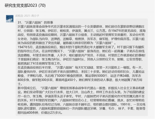 2023年7月27日,研究生党支部开展红色故事接力讲特色党日活动,支部全体党员参与此次活动。