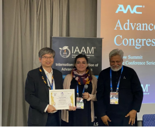 我校beat365曾荣昌教授受邀此次会议,并作了题为“Enhanced in vitro Degradation Rate on Bioresorbable Alloy by Microbial Ingress in Presence of Glucose”(葡萄糖环境下微生物侵入生物可吸收合金并提高降解率)的报告,详细介绍了课题组在可降解生物镁合金领域所取得的成绩。在报告结束之后,国际先进材料学会(IAAM)授予曾荣昌教授“国际先进材料协会科学家奖章”(IAAM Scientist Medal)以表彰他在“环境可持续发展”领域做出的突出贡献。