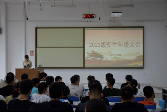为使新生深入了解大学生活,明确校规校纪,beat365于9月4日上午8:30在J1-228召开新生年级大会,2023级本科新生辅导员林振德、许珍颖及2023级全体本科生参与会议。