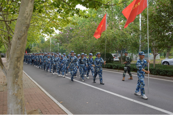 同学们昂首阔步,斗志昂扬,首先从风雨操场出发,沿思贤路向西行进,绕笔架山一周,途径国家大学科技园、家属区、致远路、学校东门,最后回到风雨操场。行军途中,设置了“翻越障碍”、“穿越铁丝网”、“烟雾袭击”三项突发场景,在教官指挥下,同学们反应迅速,克服重重障碍,顺利完成各项演习。中午时分,同学们回到风雨操场,教官第一时间清点人数,确保所有人员到齐。