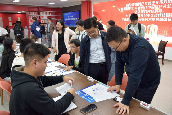 本次活动吸引了大批本科学子参与其中,由研究生对他们进行面试。本科生携带报名表前往自己心仪的项目,研究生通过面试来对每个本科生进行细致负责的选择,最终每个研究生选出适当人数组成科研小组。期间,各位领导莅临现场,对活动工作进行指导,并提出许多宝贵建议,助力本科生和研究生之间的交流。
