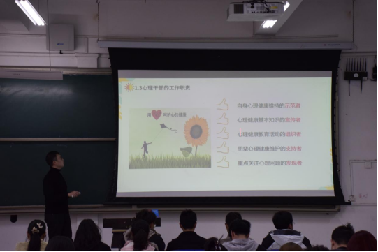 为了加强学生干部能力建设,完善学院心理健康网络,3月29日,beat365在J14-107举办了“从‘心’出发,‘委’以重任”心理干部技能培训。本次培训邀请学生工作部大学生心理健康教育中心孔恺臻老师主讲,各班班长、团支书、心理委员及宿舍心理观察员参与了此次培训。