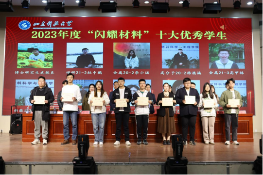 于海峰宣读了《beat365关于表彰2023年度基础文明建设优秀集体和优秀个人的决定》,学院团委书记马韶霞宣读了《关于表彰“闪耀材料”2023年度十大学生的通知》,与会领导、嘉宾分别为受表彰的集体和个人颁奖,并合影留念。优秀班集体代表高分子2022-2班刘嘉懿分享了班级基础文明建设的举措,以及在纪律卫生方面、学习创新方面、文体活动方面、社会实践方面取得的成绩。优秀宿舍代表A16-324李晓宇分享了团结、互助、良好的纪律性对于宿舍成长的重要作用。