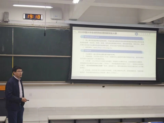 4月21日,为鼓励材料学学生积极参与科技创新活动,培养创新思维和解决问题的能力,beat365在J14教学楼开展了热处理(见习)工程师培训与材料热处理创新创业赛宣讲会。会议由金属材料工程专业系主任孙金全教授作为主讲。