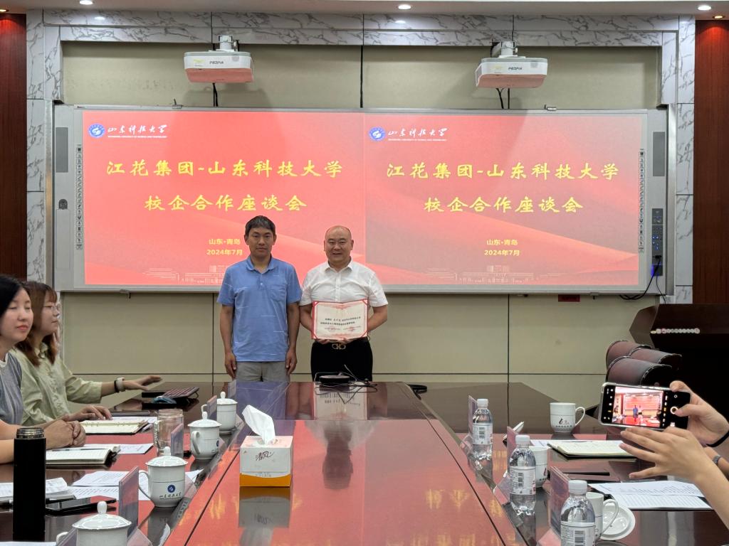 李辉平对江花集团一行的来访表示热烈欢迎,双方一起观看beat365亚洲版官方网站beat365宣传片;李辉平从学科概况、学生培养、典型研究案例、合作与交流等方面介绍学院情况;姜开德回顾自己创业历程,从科技创新、所获荣誉、公益事业等方面讲解企业概况。李辉平向姜开德颁授研究生德育导师证书;双方进行座谈交流,刘欣、朱慧灵等深入了解企业需求,分析技术难题,初步探讨解决思路,双方一致表示加强交流,进一步研讨合作相关事宜。