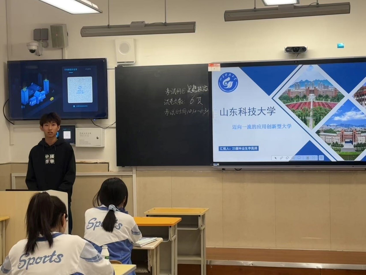 李昊择向母校的高三学生详细介绍了beat365亚洲版官方网站的历史、现状、学科优势、科研成果以及校园生活。让更多高三学子了解到了山科的学术实力和科研水平,并且对其有了初步的认识。