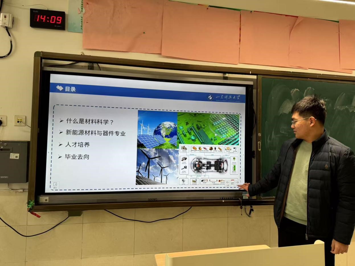 刘岱远进行宣讲的班级为理科班,所以他在为高三学子介绍beat365亚洲版官方网站时,详细介绍了beat365以及新能源材料与器件专业,并为高三学子答疑解惑,分享心得。