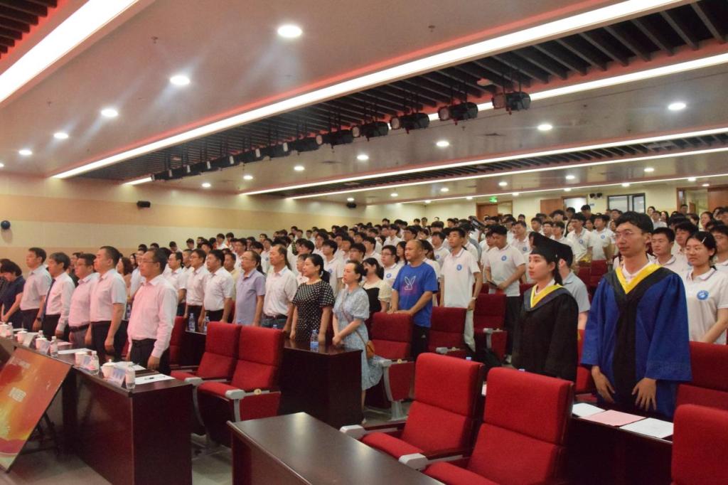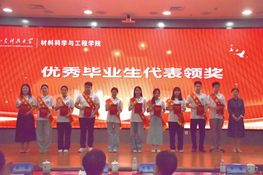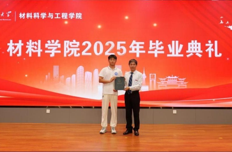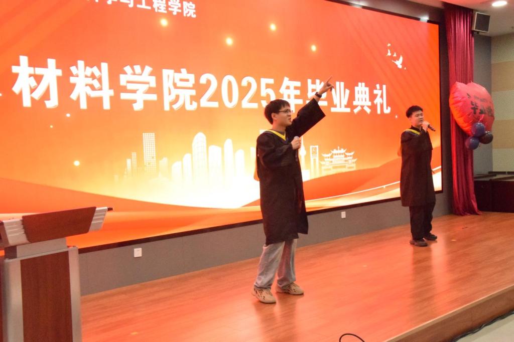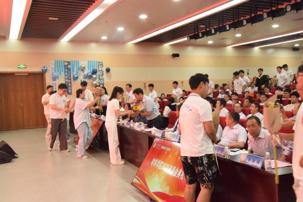 典礼尾声,毕业生代表李昌昊、张丰共同唱响了《海阔天空》与《风》,毕业生代表们手捧鲜花,走向参会的领导和嘉宾,向老师们、家长们献花致谢,同学们纷纷手挥国旗,齐声高歌,表达依依不舍的离别之情。老师们祝愿全体毕业生带着材料人的精神底色,在人生新征程上续写辉煌篇章!